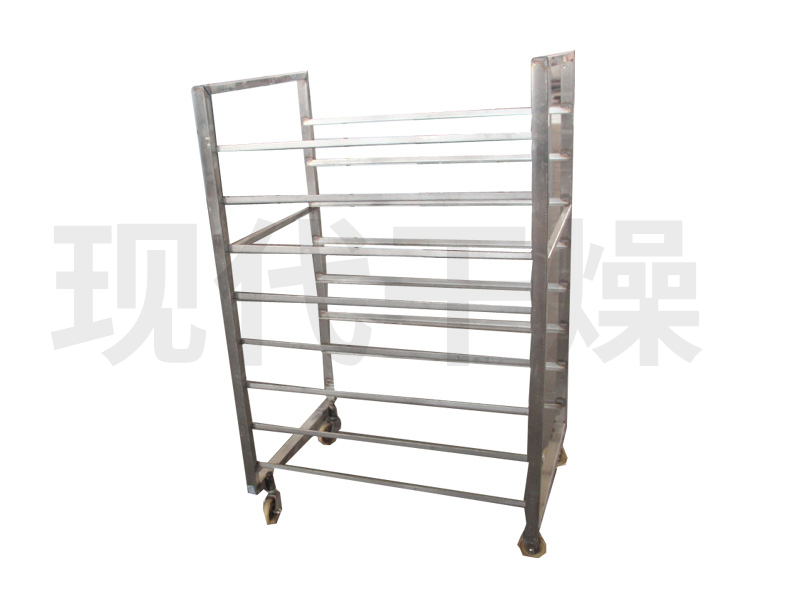 3、布置:每层放2只烘盘,共12层,常规烘车层间距100mm,也可根据烘箱的尺寸定做层间距和层数。